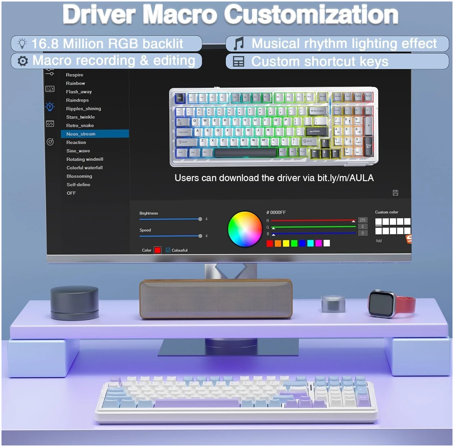 Designed with gamers in mind, the AULA F99 is equipped with features that enhance your gaming performance. The keyboard supports N-key rollover, allowing it to register multiple key presses simultaneously. This feature is crucial for intense gaming sessions where every key press counts. With 16 RGB lighting effects, you can create a dynamic atmosphere that syncs with your game or mood. The ability to customize every key with macro functionality and 16.8 million colors adds a layer of personalization that truly sets this keyboard apart. Additionally, the music rhythm lighting effects provide a visual spectacle that enhances your gaming environment.