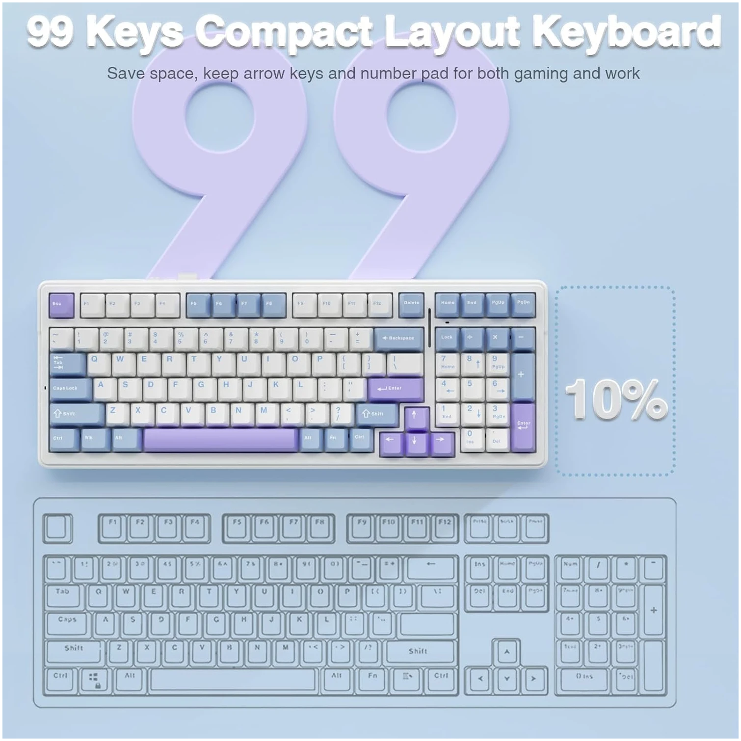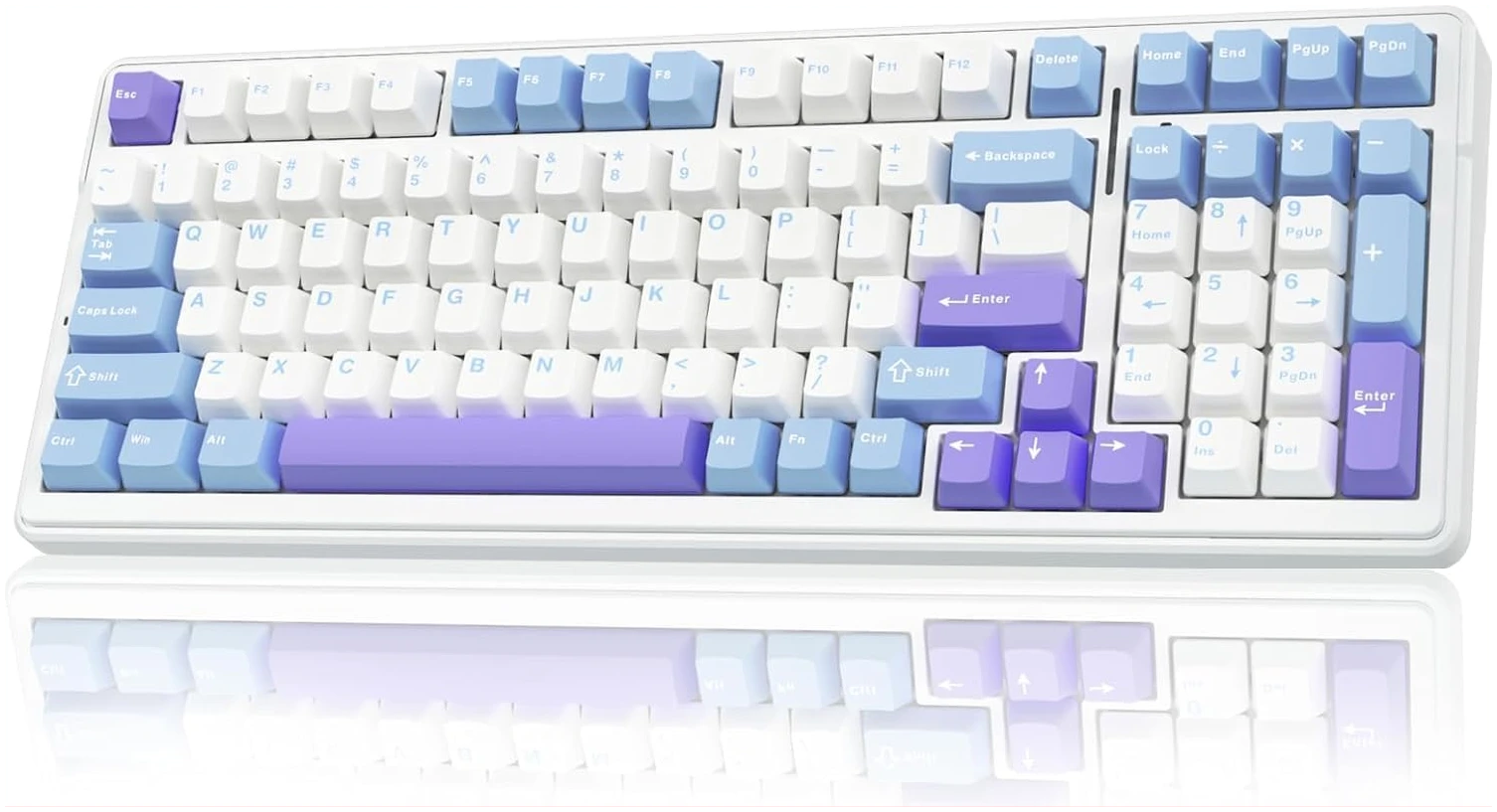 Despite its compact 99-key layout, the AULA F99 retains essential keys such as the arrow keys and number pad, making it ideal for both gaming and work. The space-saving design helps declutter your desktop while maintaining functionality. The PBT keycaps are crafted from double-shot materials, ensuring durability and preventing fading. These high-quality keycaps maintain their vibrancy and clarity, even after prolonged use.