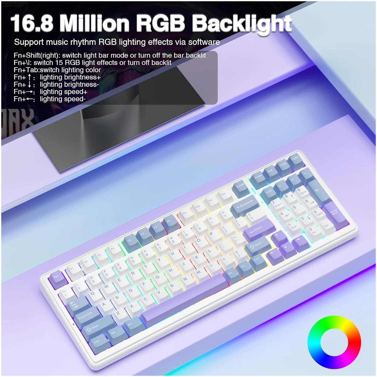 A: Absolutely! With 16 RGB lighting effects and support for 16.8 million colors, you can personalize the lighting to match your style or sync with your gaming setup. The keyboard also supports music rhythm lighting effects for an interactive light show.
